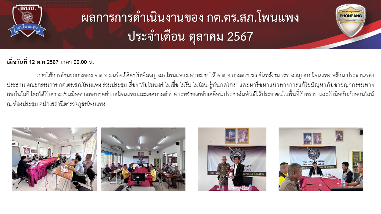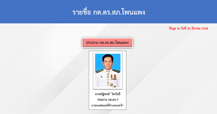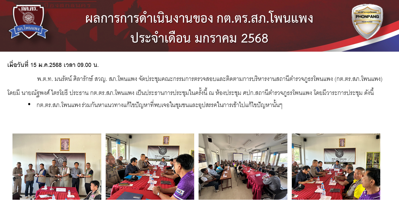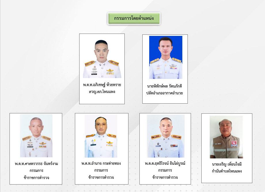 Home » มาตรฐาน ITA 2568 » ตัวชี้วัดที่ 9 การเปิดเผยข้อมูล » ตัวชี้วัดย่อยที่ 9.1 ข้อมูลพื้นฐาน » ข้อมูลพื้นฐาน » O4 ข้อมูลคณะกรรมการตรวจสอบและติดตามการบริหารงานตำรวจ (กต.ตร) ของสถานีตำรวจ