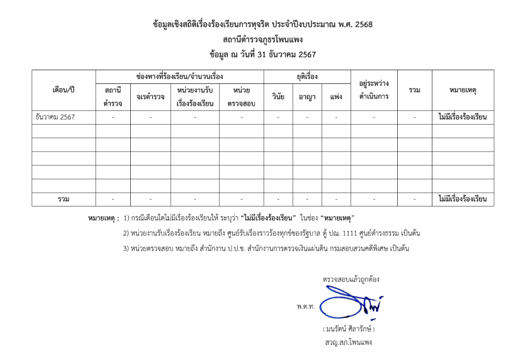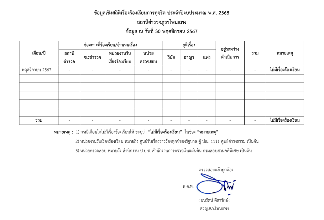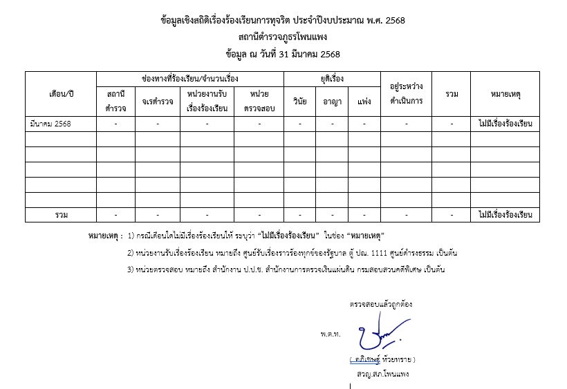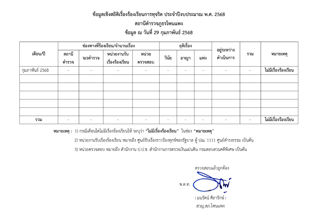 ช่องทางการแจ้งเรื่องร้องเรียนการทุจริต ผ่าน สภ.โพนแพง