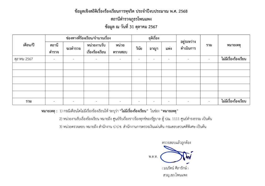 O17 ช่องทางการแจ้งเรื่องร้องเรียนการทุจริตและข้อมูลเชิงสถิติเรื่องร้องเรียนการทุจริต